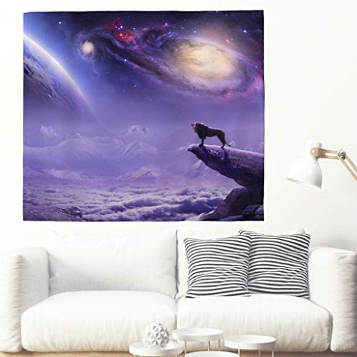 Fantasy Decor Tapestry Wolf Moon Star Cat Dog Bird Dog Universe Galaxy Lion Wall Hanging For Bedroom Living Room Dorm 51x59inches Wall B Coolest