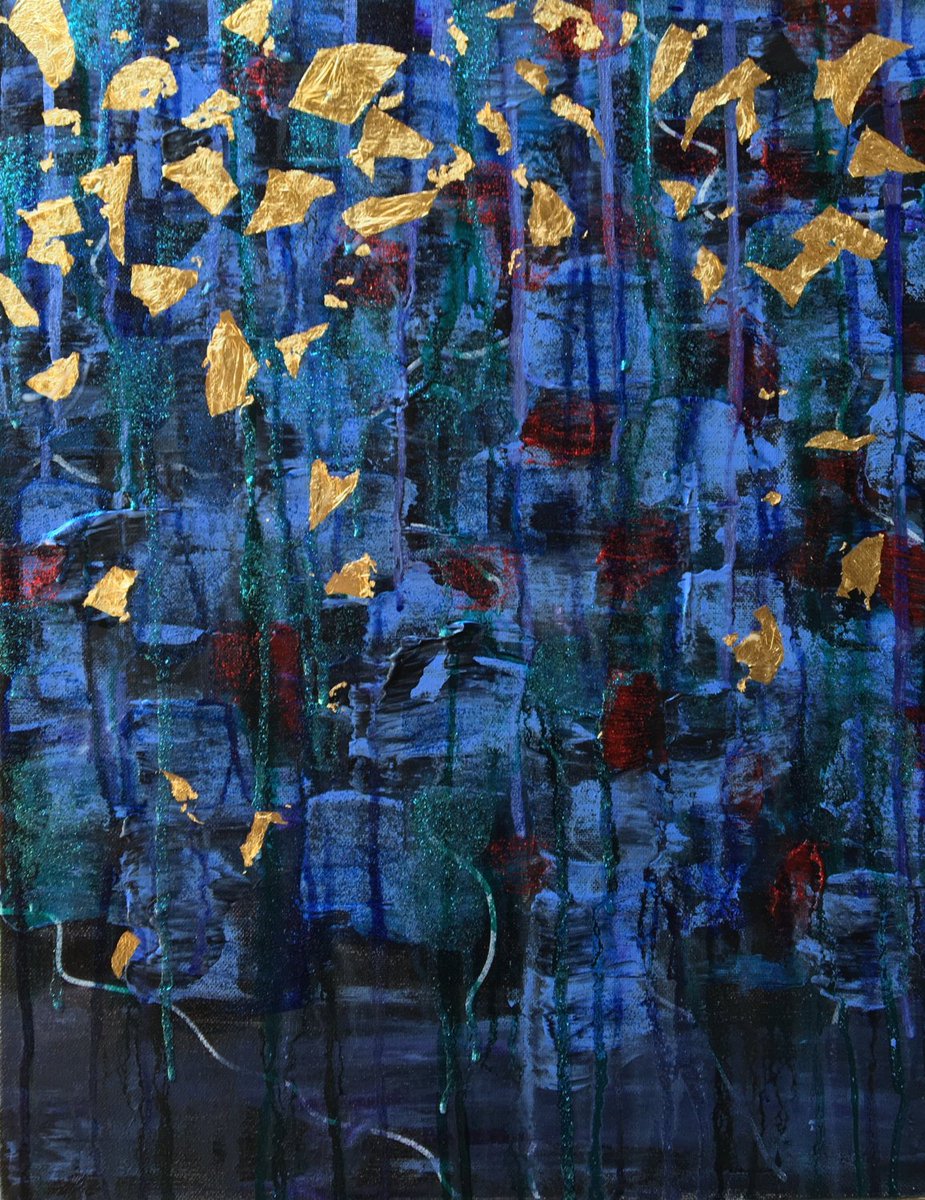 Almi Abstract Tapestry Original Acrylic Painting Layered Flower Pattern Red Blue Gold Unique Drip Glitter Gift Floral Art