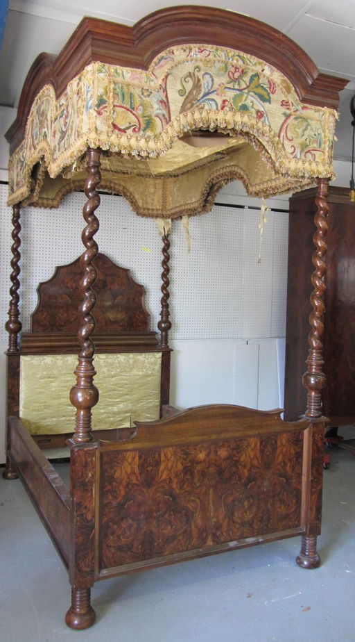 317 C1850 Tapestry Top Burled Walnut Canopy Bed
