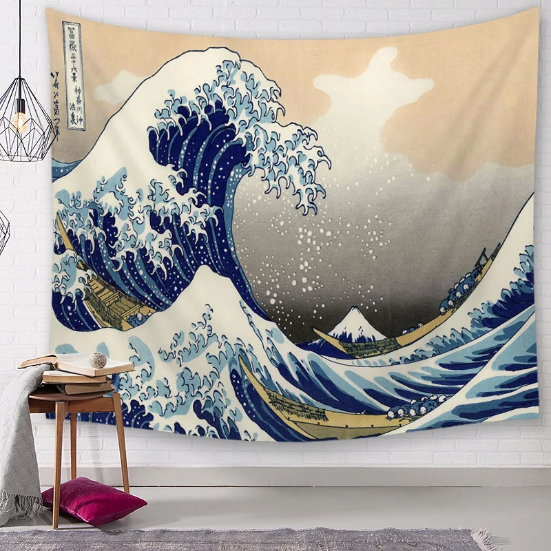 Cool Japanese Sea Wave Art Printing Tapestry Wall Hanging Beach Towel Throw Dorm Decoration Tablecloth Japanese Art Curtain