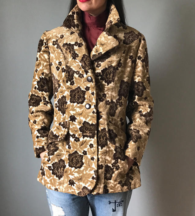 Etsy is the home to thousands of handmade vintage and one of a kind products and gifts related to your search. Shop the latest vintage tapestry coats products from zeusvintage on etsy gimmesheltervintage on etsy and more on wanelo the worlds biggest shopping mall. The fabric is a mix of flowers and stripes with colors cream brown and black.