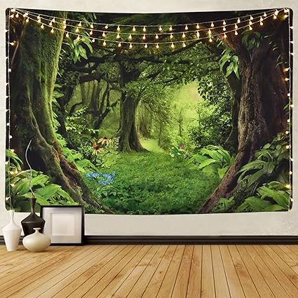 Sevenstars Green Forest Tapestry Virgin Forest And Grass Tapestry Nature Tree Tapestry Wall Hanging For Room
