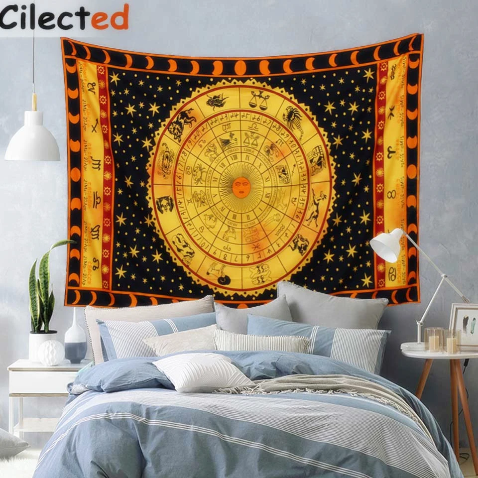Zodiac Tapestry Horoscope Tapestry Wall Hanging Indian Astrology Trippy Celtic Psychedelic Tapestry Dorm Room Hippie Tapestry