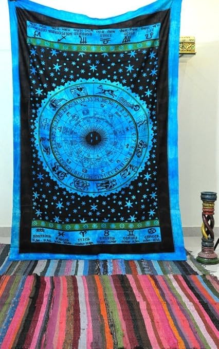 Jaipur Handloom Blue Zodiac Tapestry Horoscope Tapestry Indian Astrology Hippie Tapestry Wall Hanging Dorm Decor Psychedelic Tapestry Bohemian