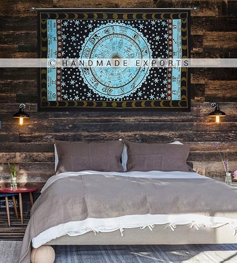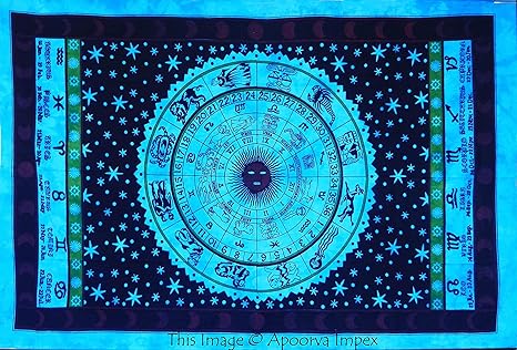 Details About Tapestry Cotton Zodiac Sunsign Design Bedspread Fabric Blue Color Wall Hanging