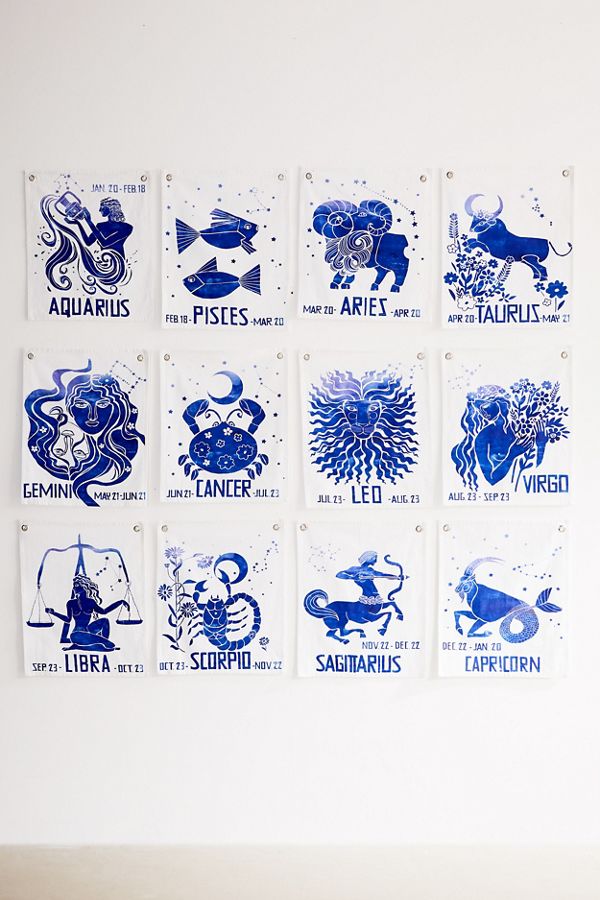 Zodiac Astrology Tapestry Wall Art New Age Astrological Home Decor Blue 635635125219 Ebay
