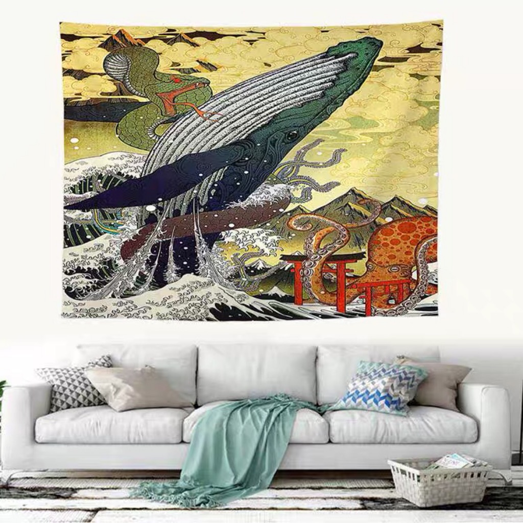 Nymb Ukiyo E Japanese Tapestry Anime Fantasy Animal Whale Tapestry Wall Hanging Ocean Waves Tapestries Wall Hanging Kanagawa Waves Fuji Art Decor
