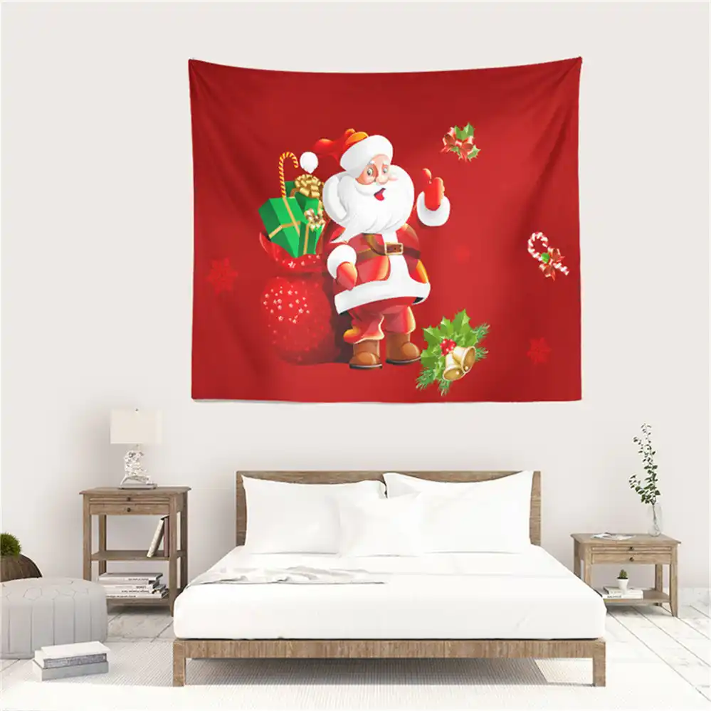Cute Cartoon Santa Claus Tapestry Red Christmas Wall Hanging Polyester Living Room Wall Carpet Outdoor Beach Mat Home Decor D40