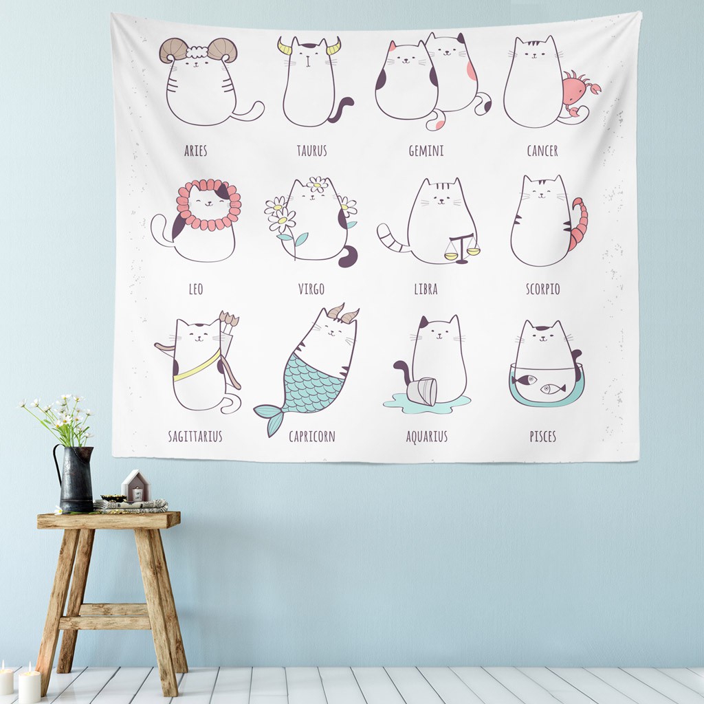 Cute Cartoon Zodiac Cat Polyester Tapestry Multi Purpose Wall Hanging Bedroom