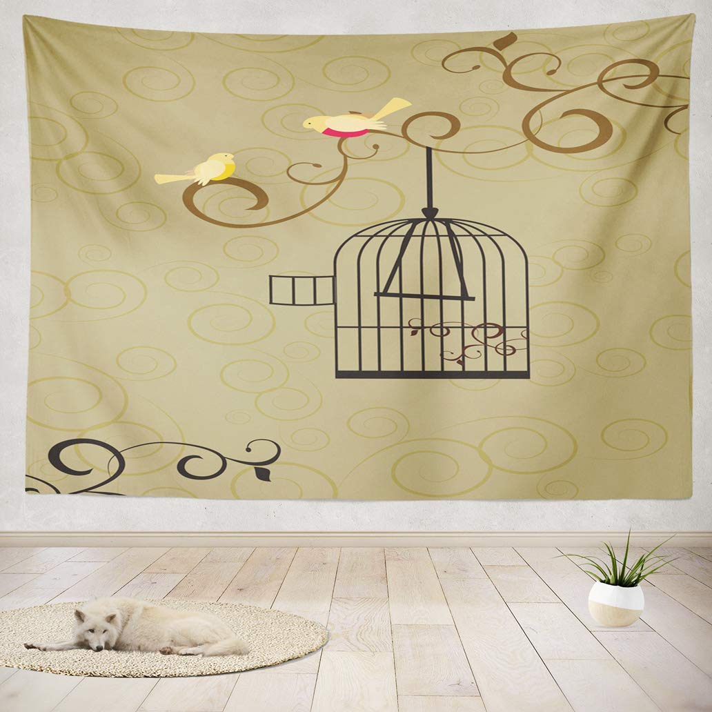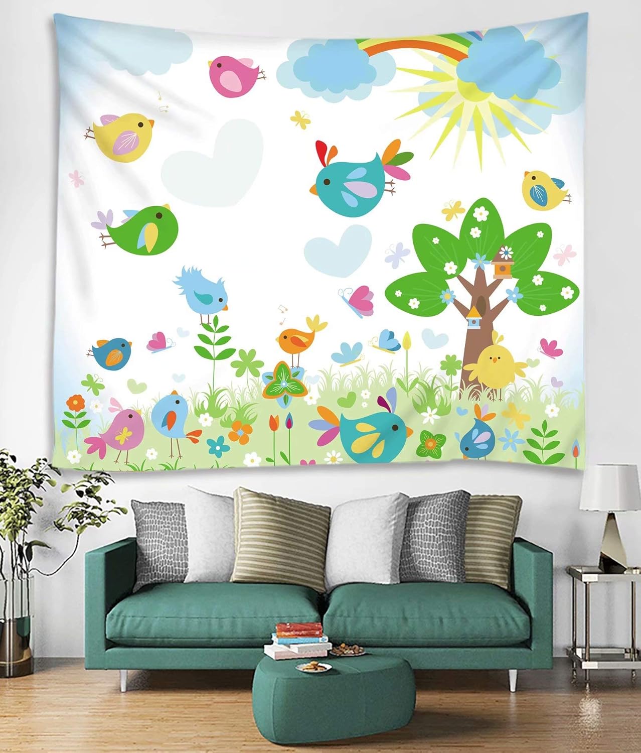 Asoco Tapestry Wall Hanging Holiday Birds Bird Open House Birthday Bloom Blossom Branch Card Cute Wall Tapestry For Bedroom Living Room Tablecloth