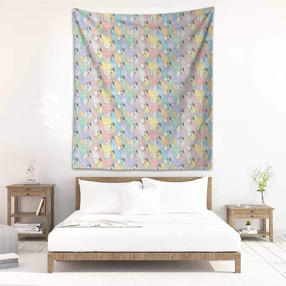 Llama Cactus Cute Wall Hangings Tapestry Room Bedroom Decorative Wall Blanket Teal Blue 59x51 Inches
