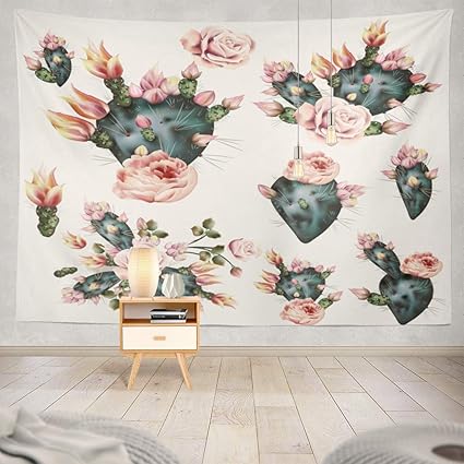 Amazon Com Kutita Tapestry Wall Hanging Cactus With Pink