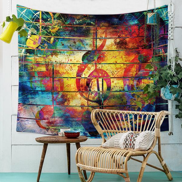 Fashion Musical Notes Tapestry Wall Hanging Simple Letter Printed Tapestry Blanket Towel Beach Meditation Home Decro In Bedding Yaga Mat Wall