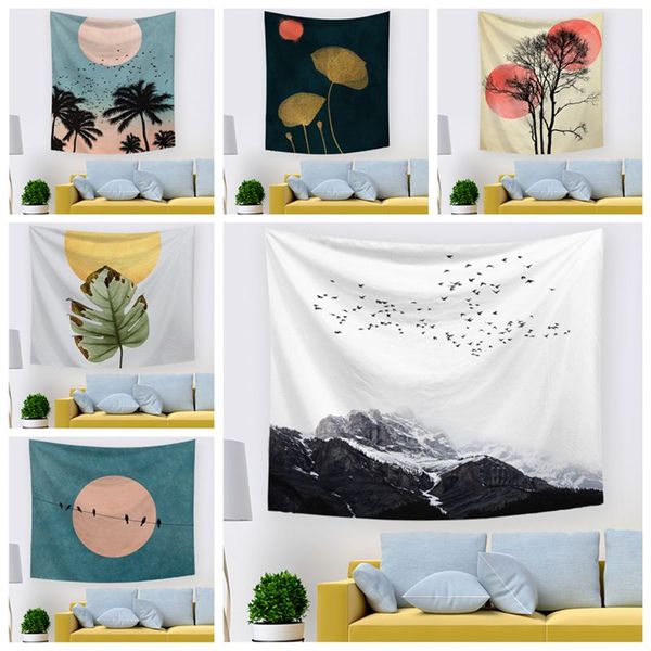 Simple Art Tapestry Leaf Bird Mountain Wall Hanging Decoration Farmhouse Tapestries Tree Palm Wall Hanging Tenture Mural Wall Tapestry Uk Wall