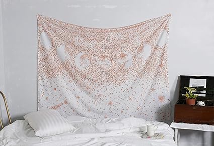 Rose Gold Tapestry Wall Hanging Bohemian Seven Phases Moon Decor Medievals Bohemian