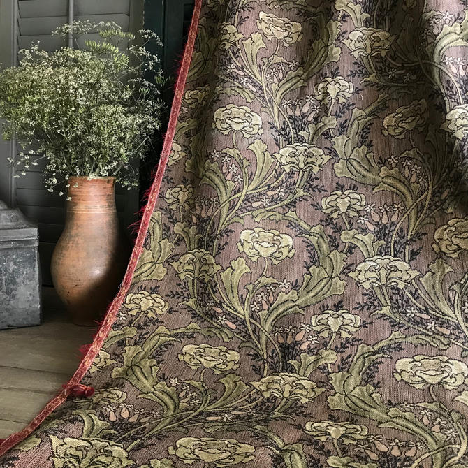 Antique French Art Nouveau Tapestry Fabric Remnant Floral