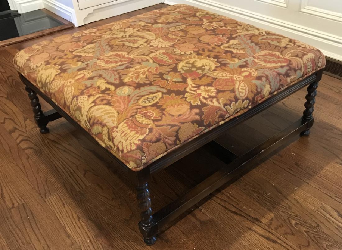 English Tudor Style Tapestry Fabric Ottoman Bench