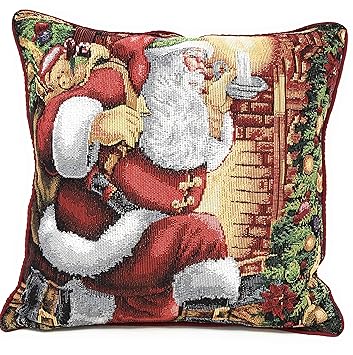 Vintage Tapestry Santa Claus Christmas Themed Throw Pillow By Portofino 15 Square