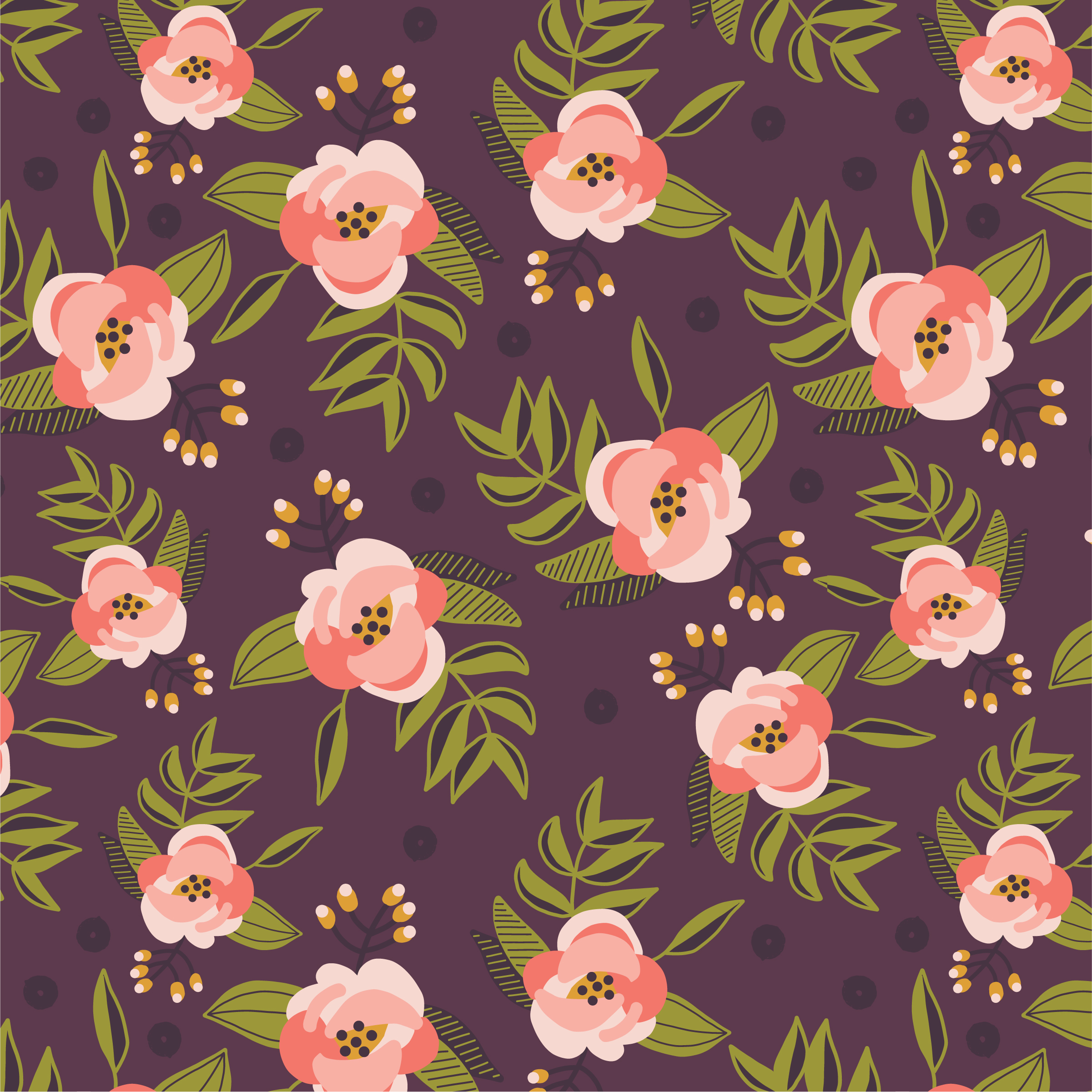 Seamless Botanical Pattern Yellow Seaberries Green Twigs