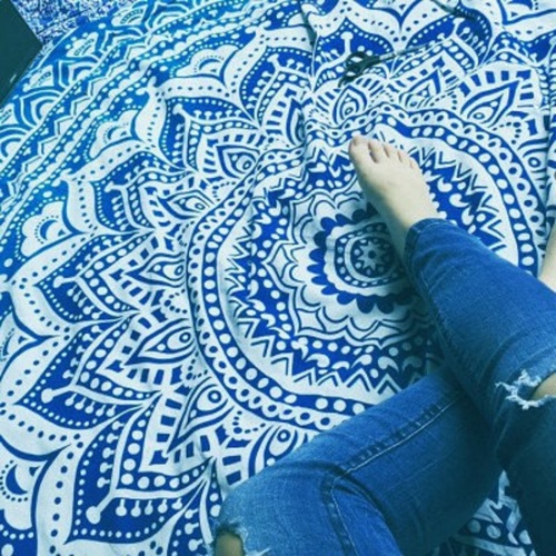 Blue Ombre Mandala Tapestry Quilt Boho Quilt Hippie Quilt Indian Style Tapestry Quilt