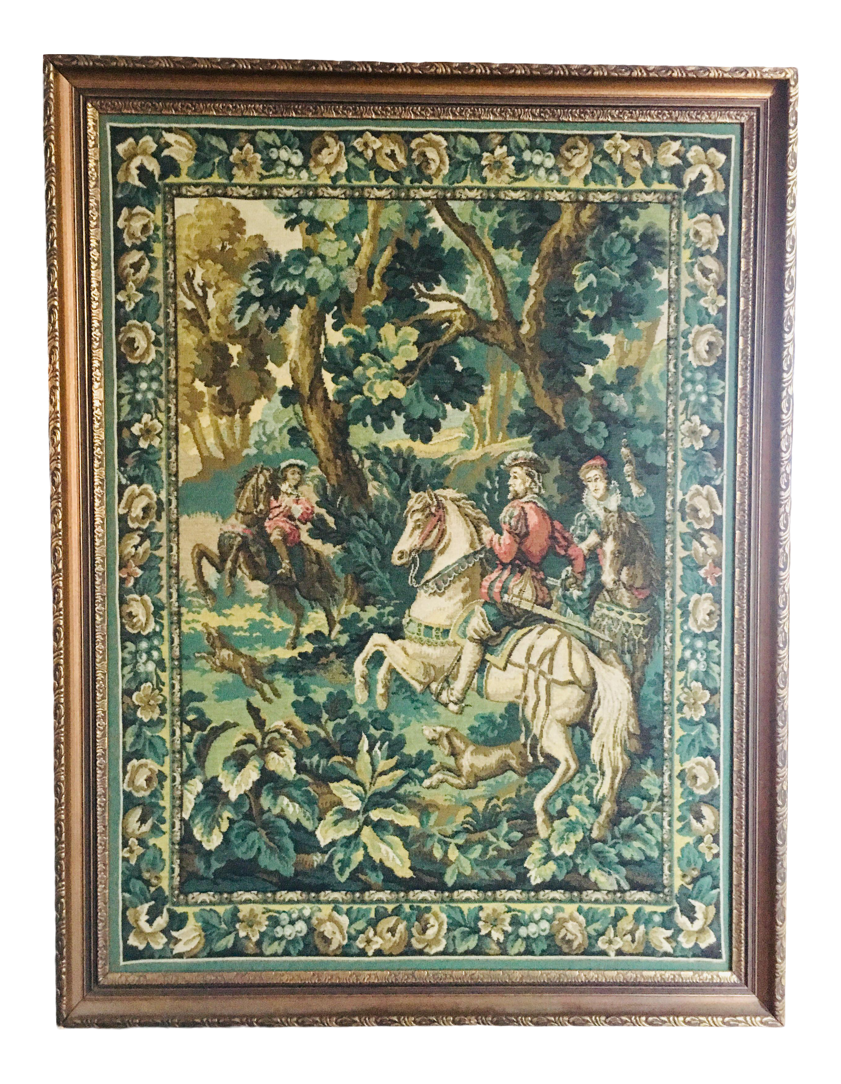 Lovely Vintage French Needlepoint Tapestry A Walk In The