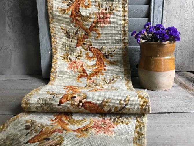French Needlepoint Floral Tapestry Border Wool Runner By Jansvintagestuff